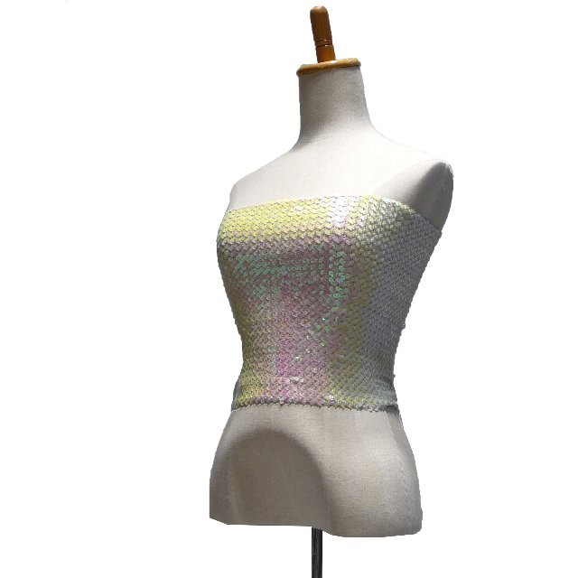 TOPブラ・トップス 布・スパンコール スパンコールベアトップ 価格: ¥2,750 (税込) [ポイント還元 27ポイント~] 販売期間: カラー: 選択してください パールホワイト 赤 ゴールド ブルー シーブルー 紫 シルバー ピンク 数量: 着 カラー在庫パールホワイト× 赤△ゴールド○ブルー○シーブルー○紫○シルバー△ピンク○ 頭からかぶって着用する、伸縮性のあるベアトップです。 スパンコールを全面に使用しているので、光が当たるとキラキラと輝きます。 舞台上でも華やかに存在感をアピールしてくれます。 素材の性質上、色落ちしやすくなっております。あて布をしてご着用いただくか、あらかじめ濡れタオルなどで内側を拭き取っていただくことをおすすめします。 (サイズ:バスト約60~80cm 着丈31cm) パールホワイト 赤 ゴールド ブルー シーブルー 紫 シルバー ピンク