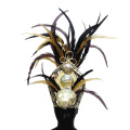 しずく型の土台に大・中・小の黒蝶貝を並べ、アクセントにタパを使った人気のヘッドドレスです。