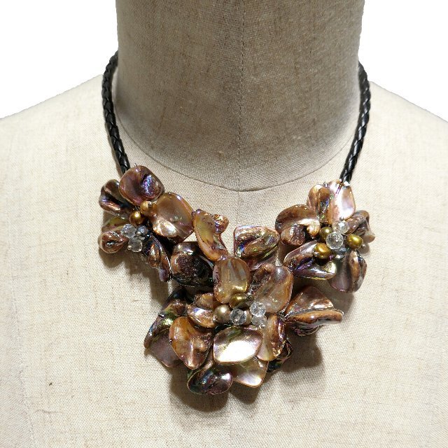 TOPレイ・ネックレス シェル・パールビーズ パールフラワーシェルネックレス 価格: ¥3,300 (税込) [ポイント還元 33ポイント~] 販売期間: カラー: 選択してください 茶 ターコイズ ピンク 白 マルチカラー 数量: 着 カラー在庫茶○ターコイズ○ピンク○白△マルチカラー○ シェルビーズや淡水パールをフラワー型に組み合わせたネックレスです。 ゴージャスなボリュームと、豊富なカラーバリエーションが魅力。 ドレスに合わせていかがでしょうか。 (サイズ:長さ約45cm) 茶 ターコイズ ピンク 白 マルチカラー