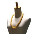 TOPレイ・ネックレス シェル・パールビーズ モンゴシェルレイ(黄) 価格: ¥3,300 (税込) [ポイント還元 33ポイント~] 販売期間: 数量: 着 在庫 △ リング状にした小粒のモンゴシェルをつなぎ合わせたリストバンドです。 お揃いのリストバンドもございます。 (サイズ:長さ70cm)